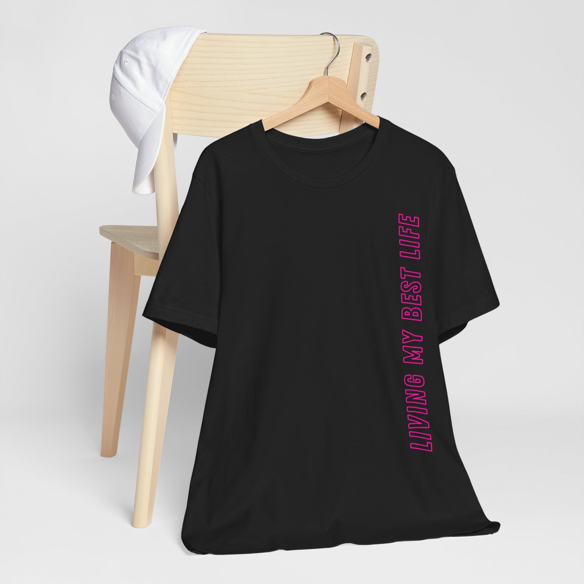 Unser "Living My Best Life" Baumwoll-T-Shirt ist die perfekte Ergänzung für deinen Kleiderschrank, wenn du das Leben in vollen Zügen genießt. Ob beim Relaxen, Reisen oder einfach im Alltag – dieses Shirt erinnert dich (und alle anderen) daran, das Beste aus jedem Moment zu machen! 🌟